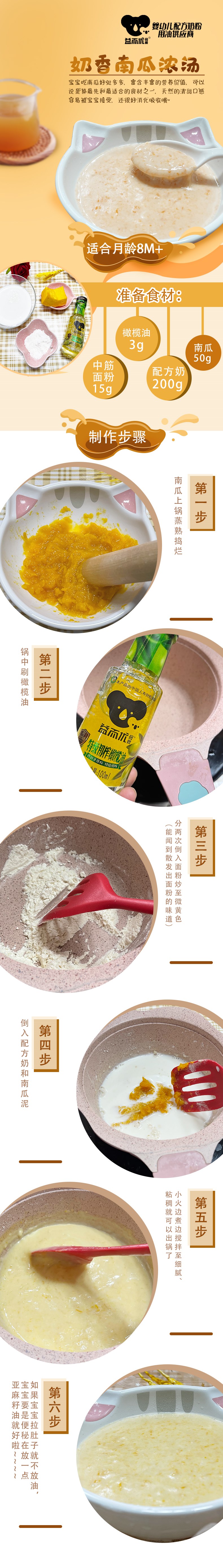 特别适合给宝宝做辅食食用南瓜的味道甘甜软糯、色泽明亮不仅口感好而且更好吸收今天这款奶香南瓜浓汤更是征服宝宝的“利器”口感细腻、奶香浓郁咕嘟咕嘟~宝宝一口气能喝一大碗哦~适合月龄:8m+